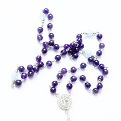 - Material: Amethyst and Aquamarine gemstones, Sterling silver, St. Benedict medal
