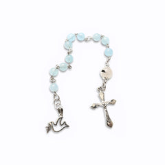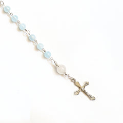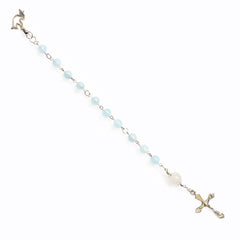 Embark on a journey of spiritual enlightenment with the celestial harmony of Tourmaline Quartz and Aquamarine gemstones, complemented by sterling silver charms of The Dove and Crucifix. Let the gentle energy of these gemstones guide you towards inner peace and divine grace. Elevate your spiritual accessories with this captivating blend of gemstones and sterling silver