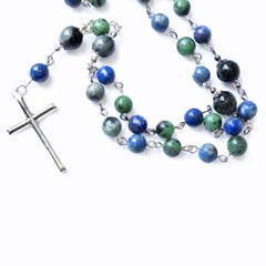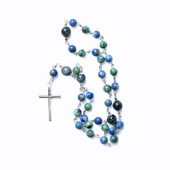 Mystical Fusion: Discover the enchanting blend of Cats Eye, Zoisite, and Lapis Lazuli in our meticulously crafted rosary, set in sterling silver.