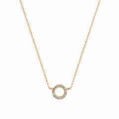 Elevate your elegance with our exquisite circle design gemstone necklace, adorned with 15 round-cut diamonds. Handcrafted with precision and care, this 18K gold necklace is the epitome of sophistication. Perfect for accentuating your attire on any special occasion or as a cherished gift for a memorable day.