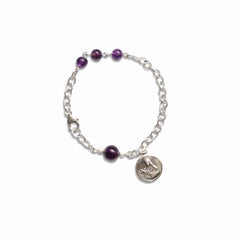 Elevate your style and spirituality with our stunning Amethyst gemstone bracelet. Crafted with care, each Amethyst stone exudes elegance and tranquility, perfectly complemented by the sterling silver Miraculous charm. Embrace the healing properties of Amethyst while carrying the divine protection of the Miraculous charm wherever you go. This bracelet is more than just a piece of jewellery; it's a symbol of faith, grace, and inner peace. Wear it as a daily reminder of the beauty and strength that reside within you