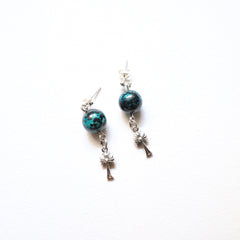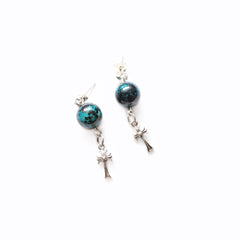 Elevate your ensemble with these exquisite Chrysocolla gemstone earrings, delicately set in high-quality sterling silver. Each earring showcases the unique beauty of Chrysocolla, with its mesmerising blue-green hues reminiscent of tranquil waters. The sterling silver setting adds a touch of sophistication and ensures durability for everyday wear or special occasions. Whether you're dressing up for a night out or adding a pop of colour to your daily look, these earrings are sure to make a statement and spark conversations wherever you go.