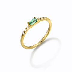 - Gemstone Cut: 6 Round Brilliant Diamond and 1 Green Sapphire Baguette Cut
