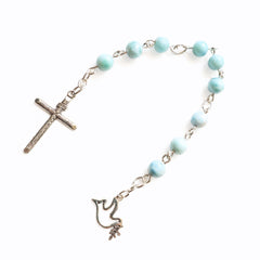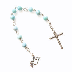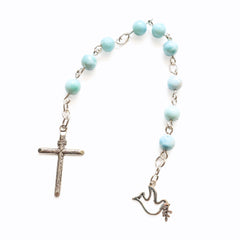 - Material: Larimar Gemstones, Sterling Silver, Dove and Crucifix