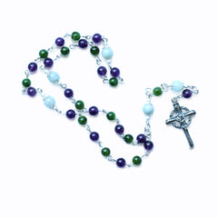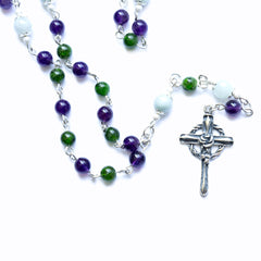 Majestic Splendour: Delight in the regal beauty of our rosary, featuring Burmese Jadeite, Amethyst, and Russian Tourmaline gemstones, exquisitely crafted in sterling silver.
