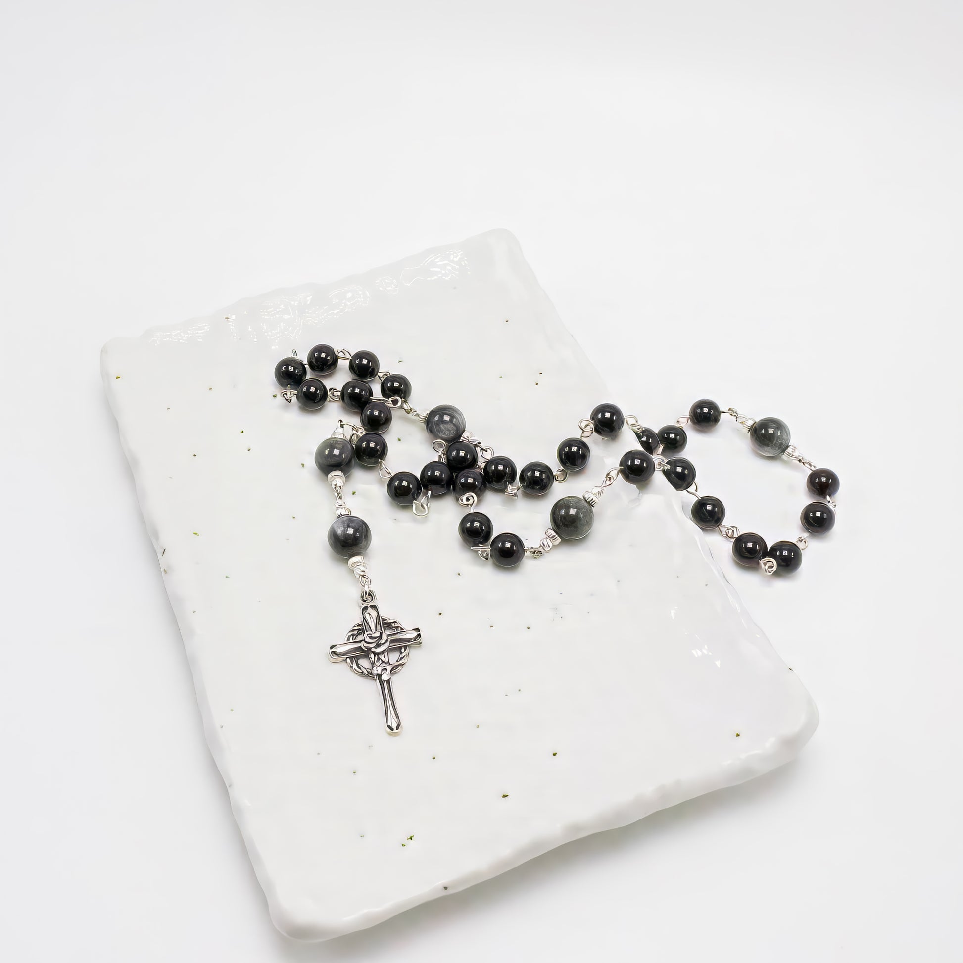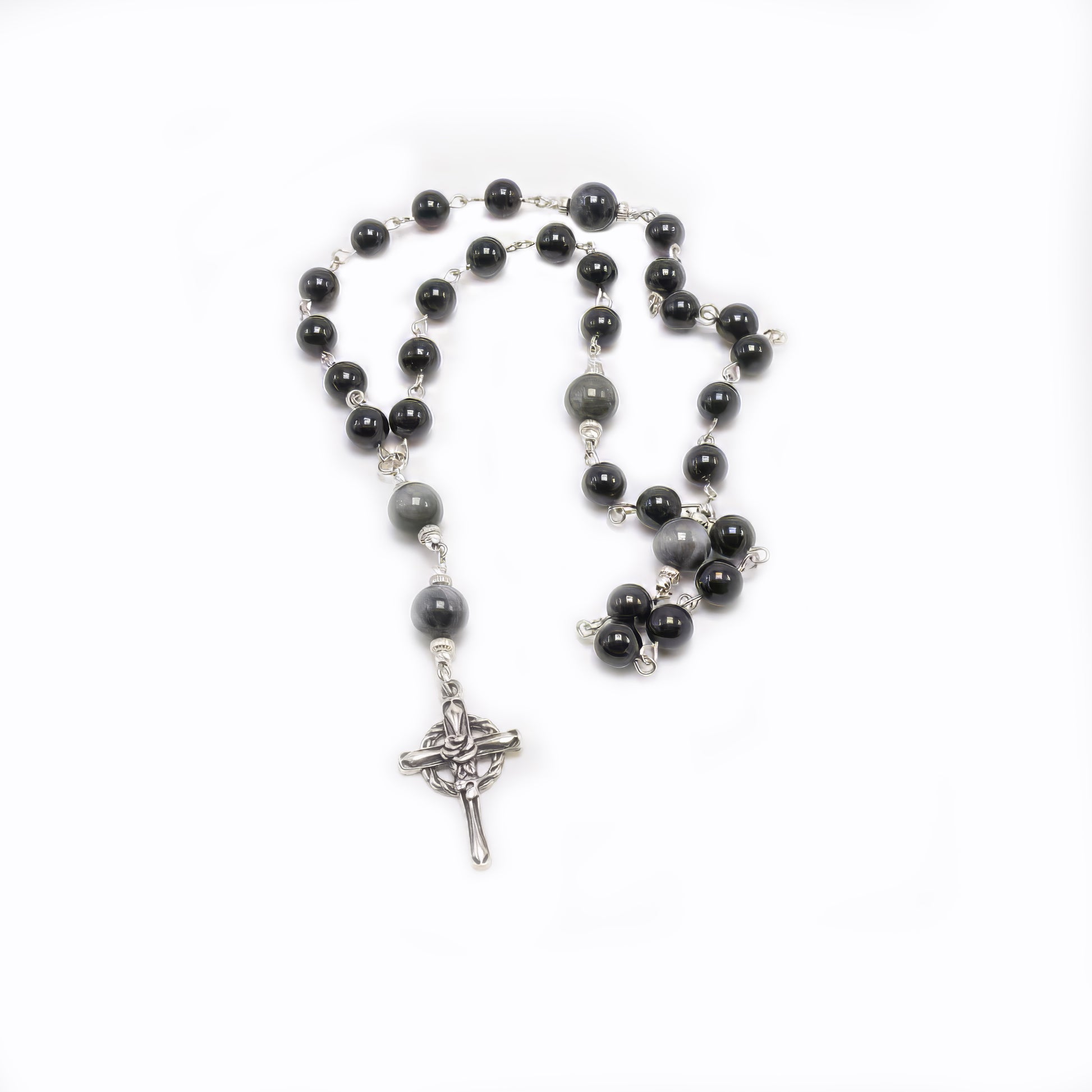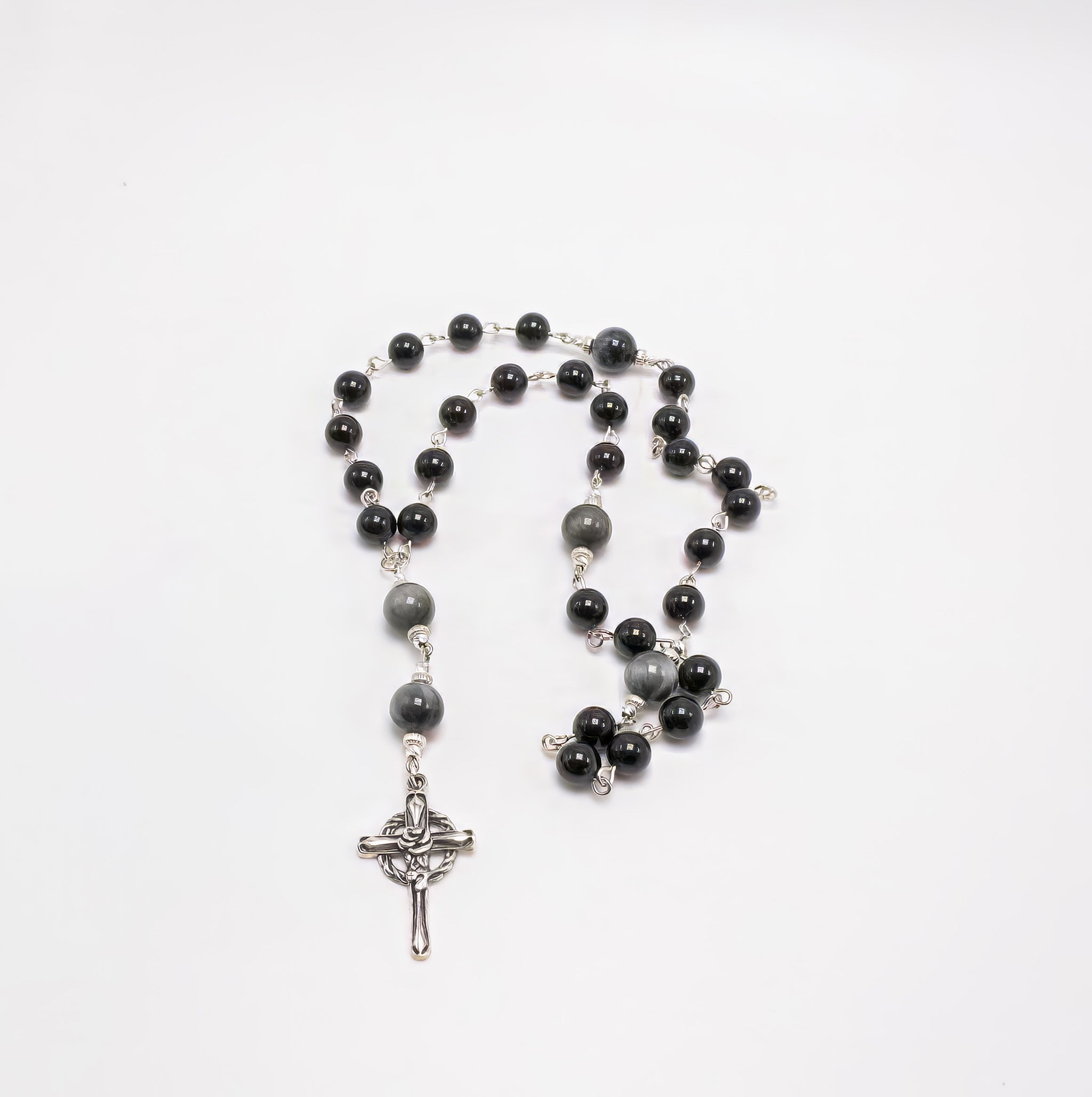 Obsidian Vigil – Cruciform Beads is a beautifully crafted devotional rosary made of 925 sterling silver