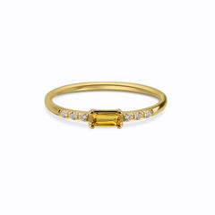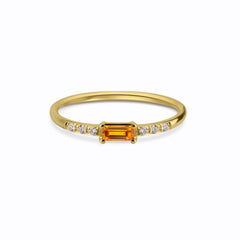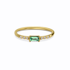 - Gemstone Cut: 6 Round Brilliant Diamond and 1 Blue Sapphire Baguette Cut